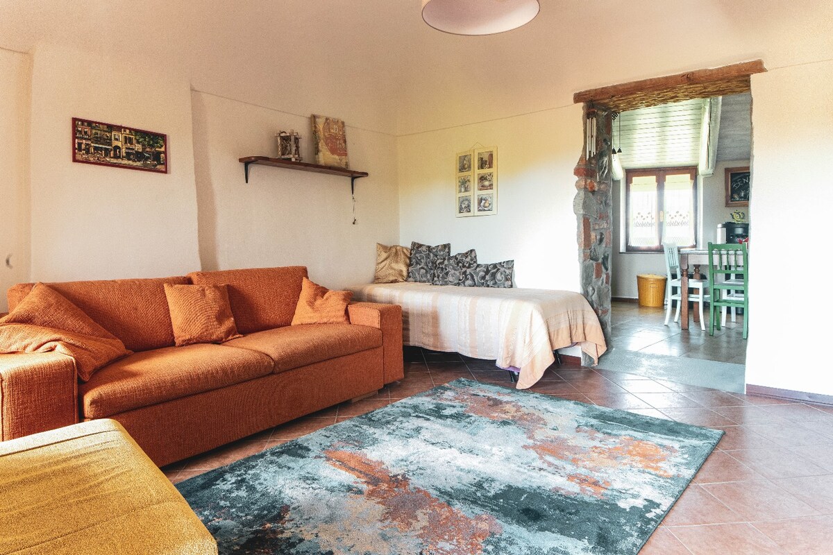 Bienvenido a nuestro refugio panorámico en las nubes de piedmont, con una piscina de 10 x 3 m. Rodeado de un bosque verde y tranquilidad, es ideal para familias y grupos pequeños, ofreciendo una planta entera con balcón para disfrutar de la vista panorámica de Turín y los Alpes. El espacioso apartamento, diseñado en un estilo típico italiano, está equipado con una cocina de madera y piedra, una gran sala de estar con chimenea y dos dormitorios. Convenientemente ubicado cerca de la autopista y perfecto para unas relajantes vacaciones.