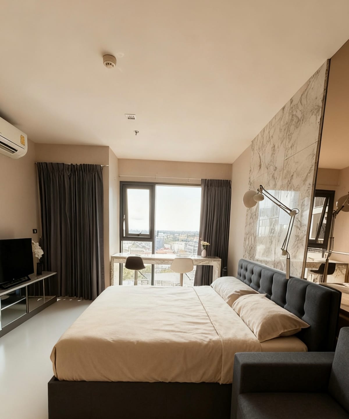 Te invitamos a elegir y alojarte en mi apartamento y espero que tengas un gran viaje a Tailandia. La casa está en Rama9, departamento LOFT entregado en 2024.El tamaño de la habitación es de unos 40 metros cuadrados, incluyendo un dormitorio, un salón y comedor, una cocina y un baño, que puede alojar fácilmente a 3 adultos. (tps: 1 cama en el dormitorio cuando la reserva es de 1-2 personas, si necesita agregar un sofá cama, complete el número de personas como 3 en el momento de la reserva, y háganos saber especialmente después de la reserva que organizaremos que el personal haga el sofá cama antes de que haga el check-in) El precio de la reserva incluye el uso de toda la propiedad, así como el costo del gimnasio, la pileta y el espacio de coworking.
