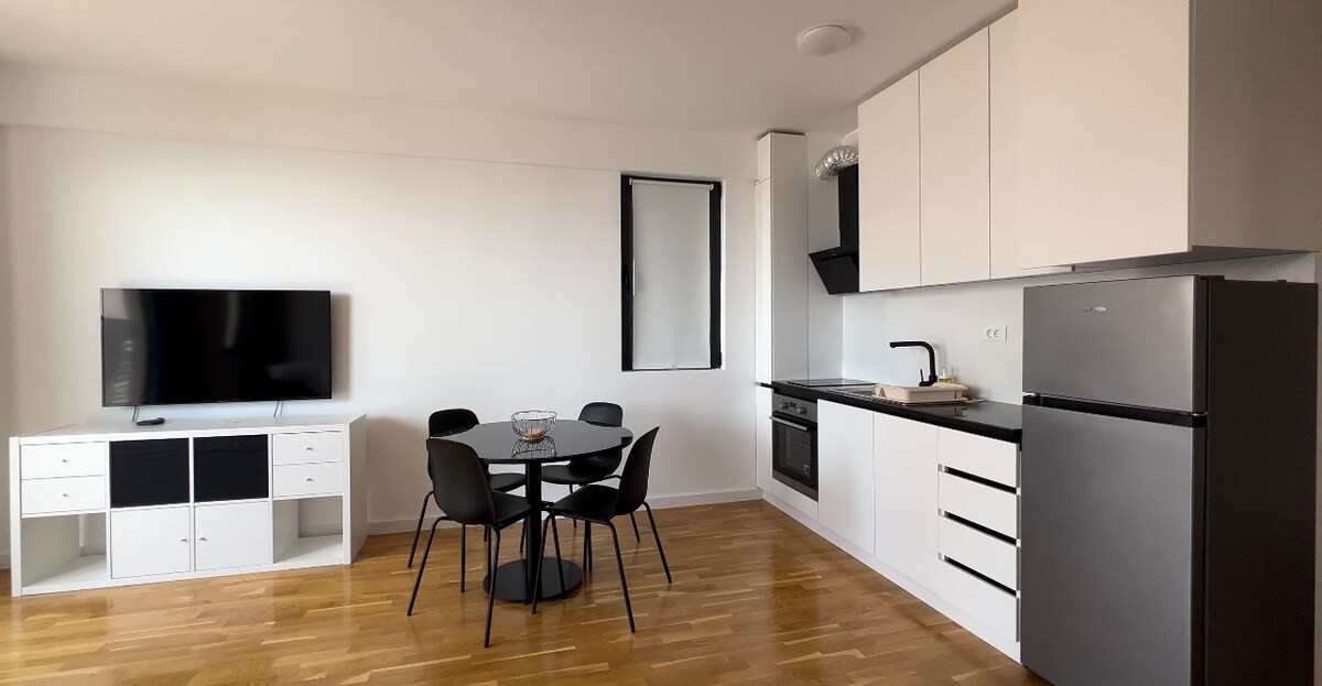 Viviendo junto al mar en un elegante y nuevo apartamento de 50 metros cuadrados, idealmente ubicado a solo 50 metros a pie de la playa, restaurantes y mercados, la famosa playa de Kamenovo está a 10 minutos a pie. El apartamento está totalmente amueblado, cocina totalmente equipada, un acogedor dormitorio con cama tamaño queen y un cómodo salón con sofá cama de 145x200 cm. Servicios modernos, incluidos electrodomésticos nuevos, lavadora, internet y TV. Estacionamiento gratuito en garaje cubierto con acceso rápido al ascensor.