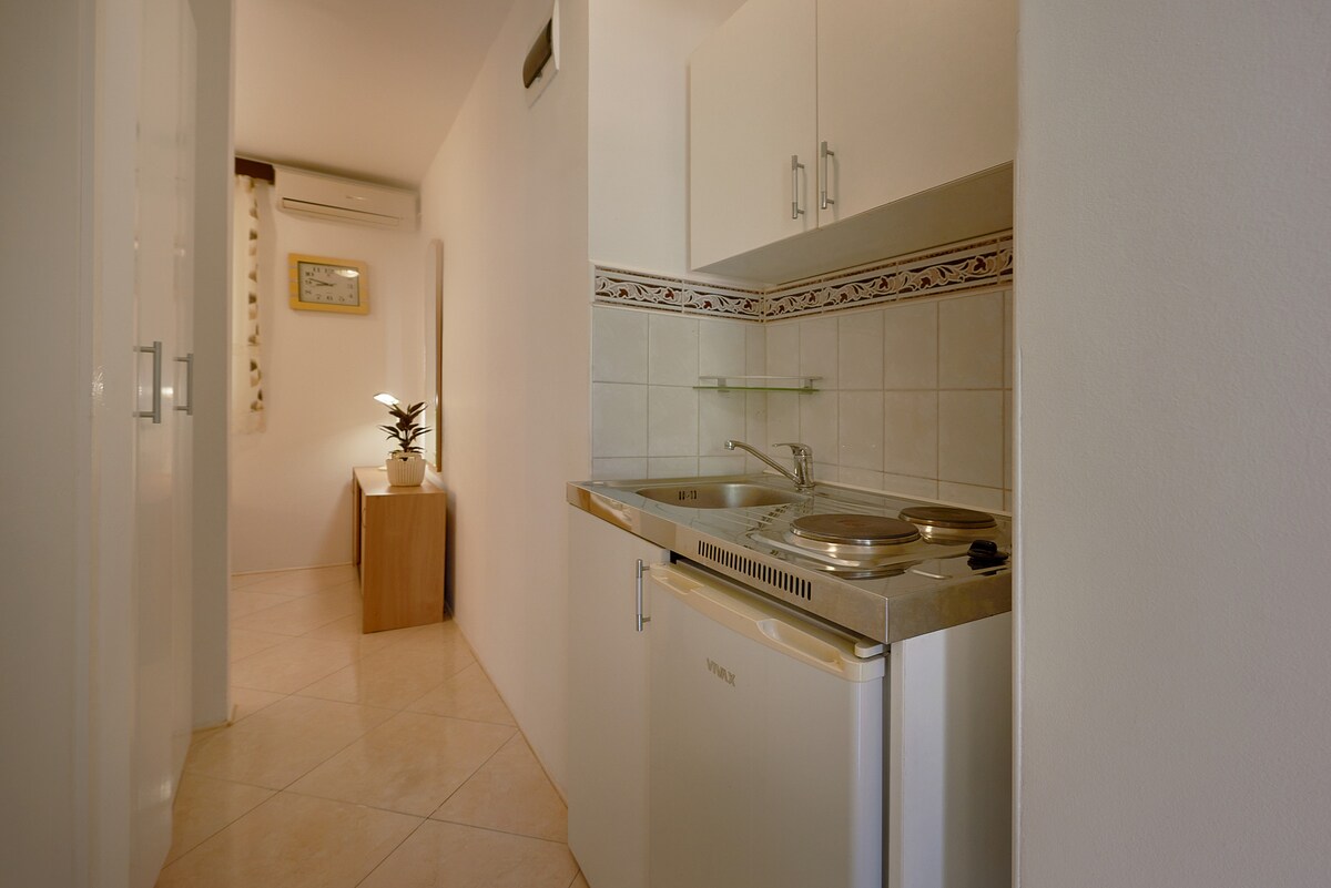 Miejsce idealne na pobyt wakacyjny. W budynku do dyspozycji gości jest duży taras i restauracja. W sezonie letnim otwarty basen. Apartament składa się z kuchni, łazienki, sypialni, salonu z rozkładaną kanapą i tarasu. Wyposażony we wszystko co potrzeba do pobytu: naczynia, szklanki, sztućce, ręczniki a także pralkę. Tylko 250m od jednej z większych plaż w Montenegro z restauracjami i kawiarniami, sklepami. Przed budynkiem postój taxi 3km od centrum Budvy. Parking w garażu bezpłatny.