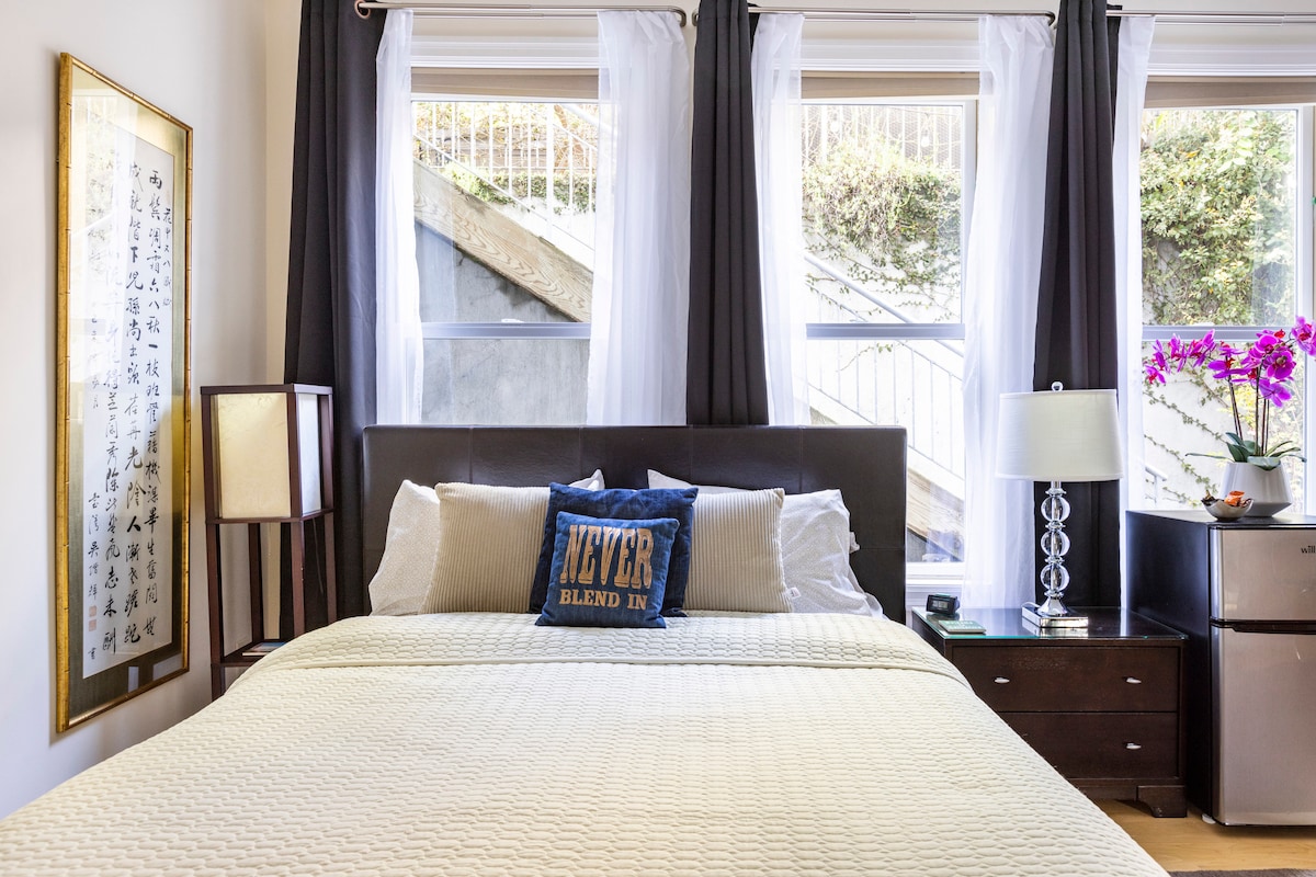 Relájate y desconecta en este alojamiento tranquilo y elegante. Estarás cerca de todo lo que quieras ver y hacer, ¡pero es tan acogedor que no querrás irte! Empieza el día con un paseo en bicicleta estática y después refréscate en tu ducha tipo spa, luego toma una taza de café en el jardín. Dirígete al parque Golden Gate o pasea por el Haight-Ashbury. Más tarde, regresa a tu suite para comer y relájate en el cómodo sofá y ver la televisión. Por último, métete en la lujosa cama tamaño queen para una noche de descanso tranquila.
