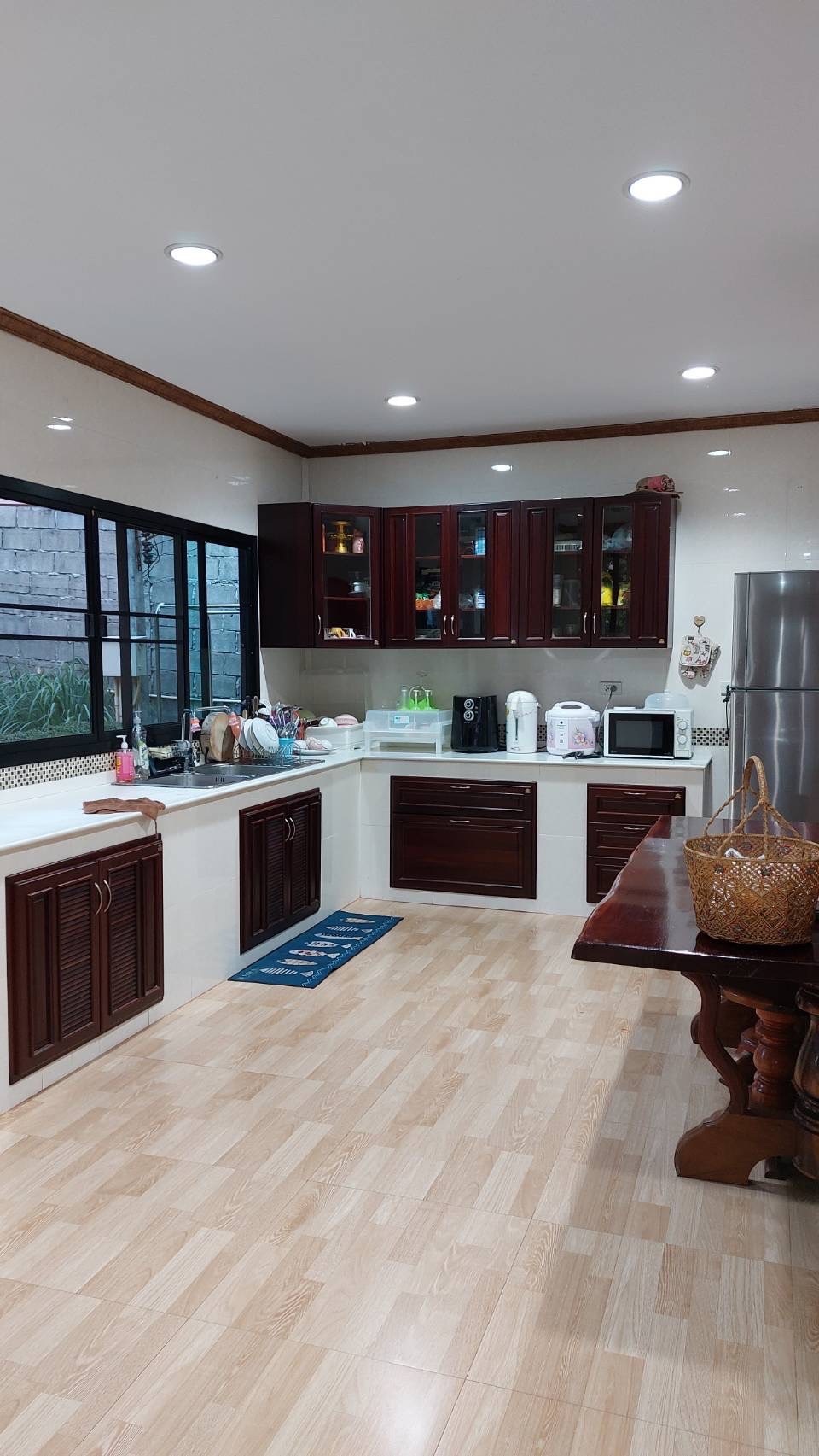 Perfect for families who appreciate a laid-back atmosphere, this 7-rai (approximately 2.8-acre) plot of land offers ample space for additional camping, walking, cycling, exercising, and escaping the hustle and bustle to relax under the stars. This is a vacation home currently under construction by the owner, designed in a rustic style, featuring a swimming pool, boating facilities, a mango orchard, and free solar power. It's located just 1 km from shops and residential areas,5 km from a 7-Eleven