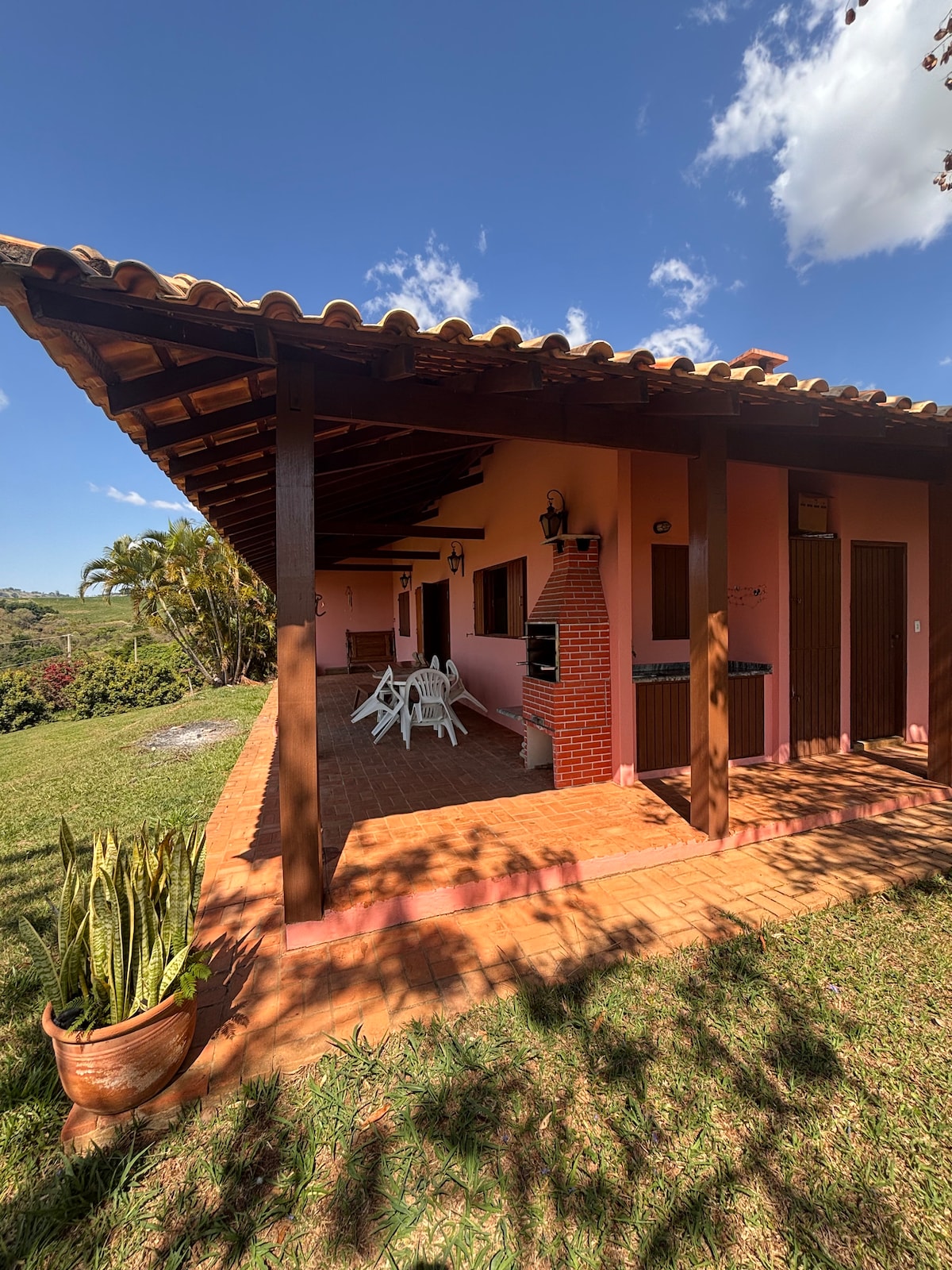 Casa ubicada a 4 km del centro de la ciudad de Bueno Brandão-MG, con cascada a 200 m (dentro de la propiedad). Casa nueva, recién construida con un aspecto increíble, donde se puede dormir con el sonido de la cascada. ¡La naturaleza que rodea la casa es una verdadera obra de arte! Excelente para relajarse, disfrutar de un buen vino o leer un libro.