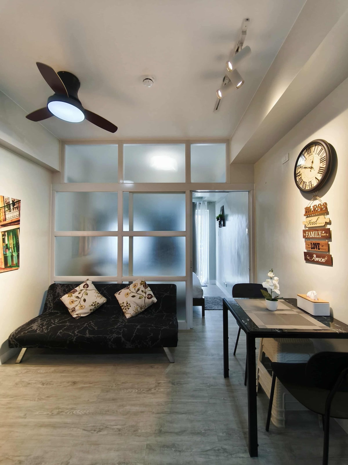 Kick back and relax in this calm, stylish space bauhaus-inspired studio unit with a city and mountain view that captures dreamy mornings and bed weather vibes. We pride ourselves in having a clean studio condo at an affordable price! Discounts for longer stay. š æļøPARKING RATES: (Please inform ahead of time) š Car -ā±250 to ā±300 šµ Motor - ā±150 to ā±200 š¦SWIMMING POOL DETAILS: Proper swimwear is required 𩱠Swimming Time: 8AM to 10PM ā±150/pax regular days ā±300/pax holidays