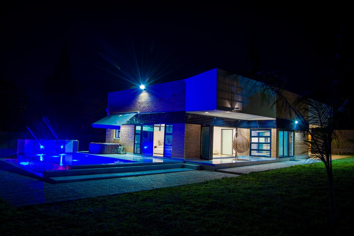 BUSCANDO ESPACIO, COMODIDAD, PRIVACIDAD Y UN TOQUE DE LUJO En el momento en que entras por la puerta principal desde el amplio porche delantero, entiendes que este alojamiento está diseñado para adaptarse a una gran familia o visitantes de negocios. La casa ofrece 4 dormitorios, 3 baños completos, 2 salones, gran cocina moderna y comedor, DSTV , ENERGÍA SOLAR Y AGUA. La pièce de résistance es la pared de TV empotrada de la sala de estar, mientras que el versátil salón hundido da la opción de ver diferentes canales.