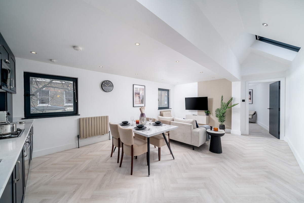 This Modern and Stylish 1-BR flat is perfect for up to 4 guests and is situated in Zone 1. It is only a 5-minute walk from Elephant & Castle tube stations, just 3 Stops to Big Ben, and 5 stops from Picadilly Circus! It features a spacious living area with a sofa-bed, chairs, a desk with a monitor and a Smart TV, a well-equipped open kitchen with a Nespresso machine, a bathroom with a bathtub, a separate bedroom with a UK Double-size bed, and ample storage space. Say goodbye to slow WiFi!