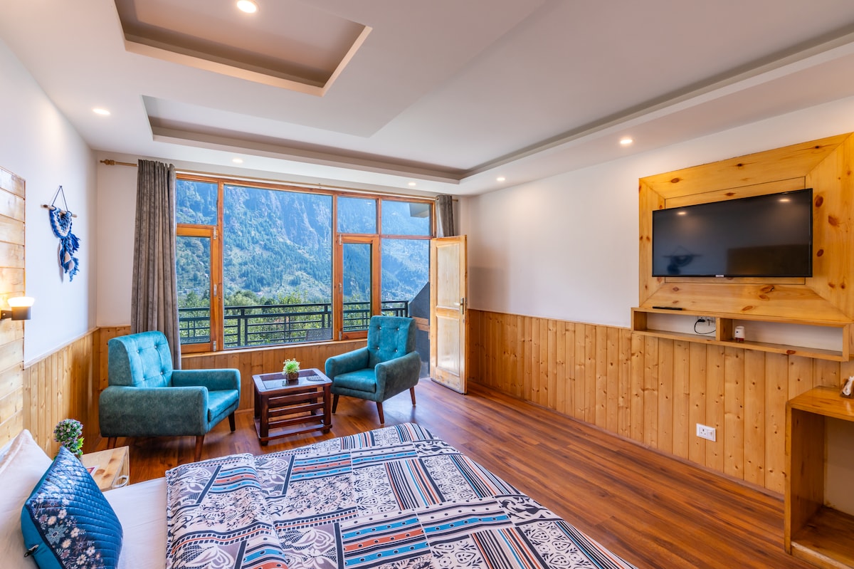 Habitación de lujo | Balcón con vistas panorámicas | Manali