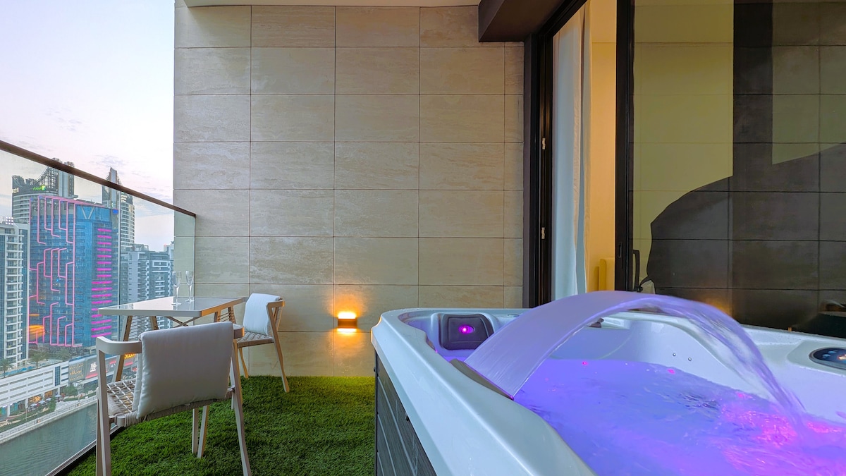 Welcome to your ultra-luxury escape in the heart of Dubai! - Luxury studio in Binghatti Trillionaire, Business Bay - Private jacuzzi balcony with breathtaking Canal & skyline views - Elegant interiors with premium finishes & serene Queen bed - Access to pool, gym, sauna - 24/7 concierge services - Just minutes from Dubai Mall & Burj Khalifa - Book your unforgettable Dubai escape today! - Gas currently not working