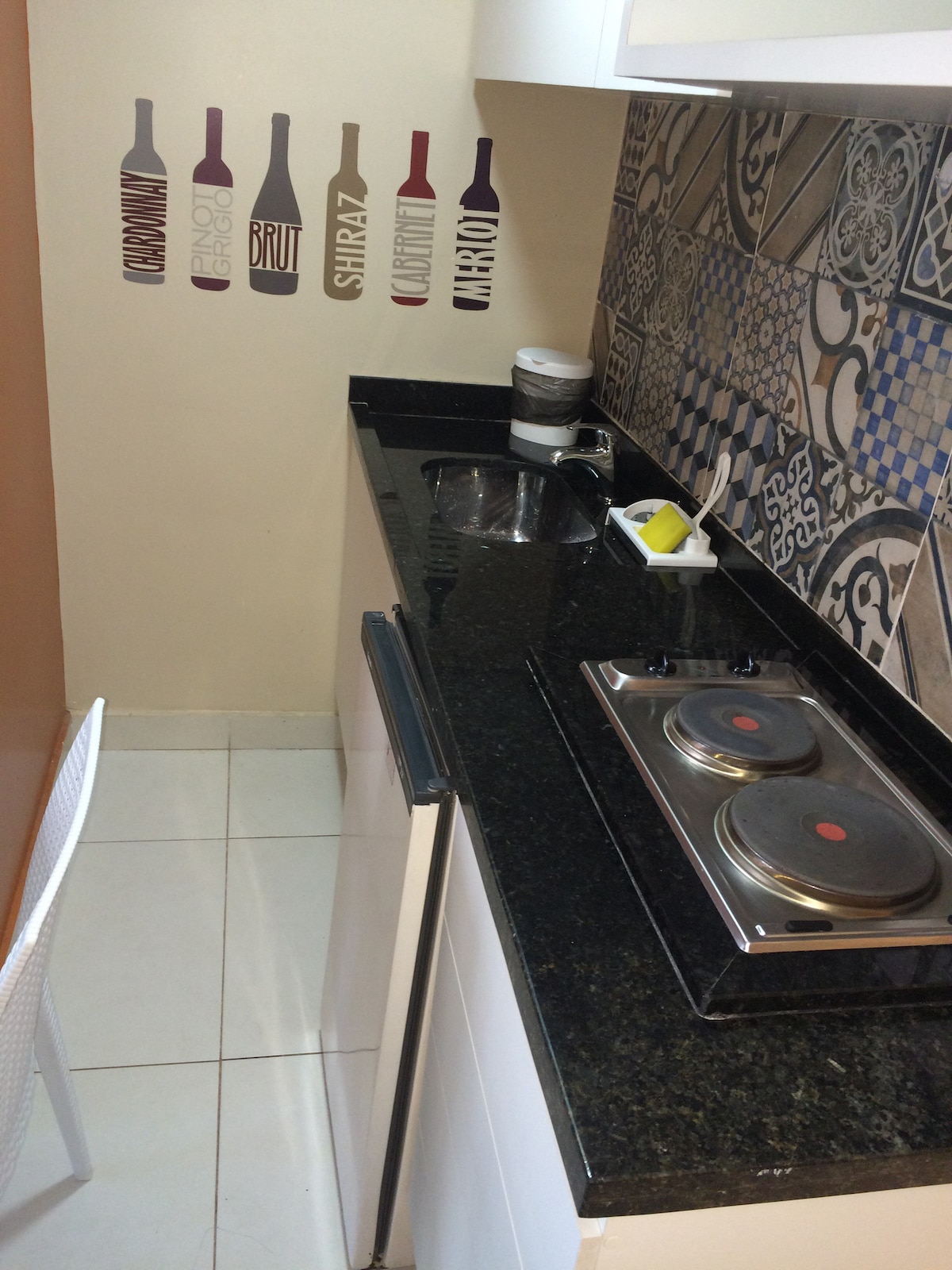 Wi-Fi gratuito y estacionamiento rotativo SmartTV LED 40" Comida y bebida: cocina americana con frigobar, microondas, cafetera y sandwichera Aire acondicionado Split Baño: baño privado con ducha, toallas. Comodidad: control climático, cama Queen ultra cómoda. No ofrecemos servicio de limpieza diario. Estadías largas, el servicio de limpieza se puede negociar antes de la reserva. Desayuno no incluido en la tarifa diaria*