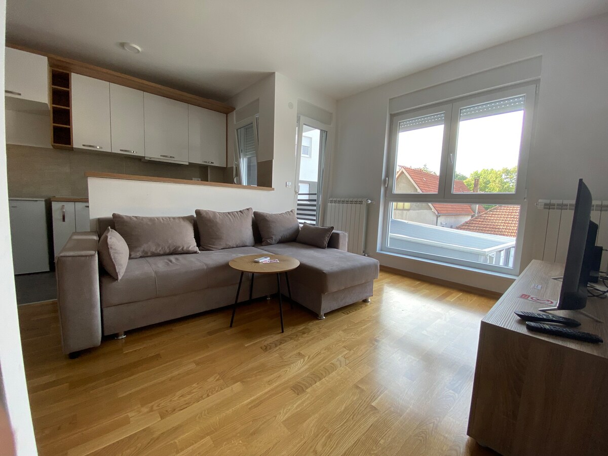 Cómodo y moderno apartamento en un barrio tranquilo, a 800 metros a pie del centro de la ciudad. Consta de salón con cocina totalmente equipada, un cómodo dormitorio y un bonito balcón. Hay plaza de aparcamiento gratuita disponible en el patio. Cada detalle está diseñado para que tu estancia en nuestra ciudad sea lo más placentera posible. Si te interesa hacer senderismo al aire libre o visitar lugares de interés cultural e histórico locales, no dudes en ponerte en contacto con tu anfitrión para obtener ayuda o una sugerencia.