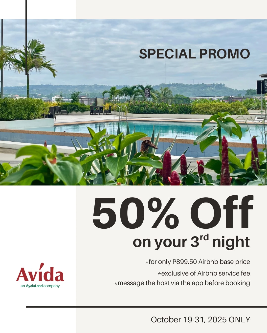 • cerca de la terminal de traslados del aeropuerto de Magnum • cerca de la terminal de autobuses de Agora • Cerca de centros comerciales (Limketkai, SM Downtown Premier, Centrio Ayala, Gaisano). • Unidad totalmente amueblada con electrodomésticos (dormitorios con aire acondicionado, televisor inteligente de 50”, microondas, refrigerador, cocina de inducción y campana extractora, olla arrocera, hervidor de agua, ducha con agua caliente) • vajilla y utensilios de cocina completos • wifi rápido y estable • Disfrutá de la relajante vista de la vegetación desde el séptimo piso, ¡sin distracciones! • Acceso a la pileta y al gimnasio • parque de juegos para niños