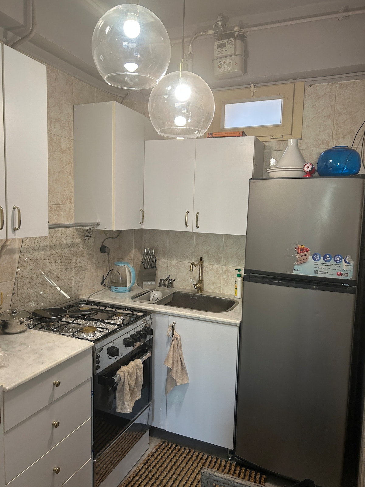 Estudio de lujo con un diseño moderno y un ambiente relajante, ubicado en una zona tranquila en Nasr City, cerca del centro comercial City Stars. Cuenta con una bañera independiente privada con agua caliente y ducha, colchones ortopédicos para la máxima comodidad, una cocina totalmente equipada y wifi de fibra de alta velocidad. Perfecto para parejas, viajeros solos y huéspedes de negocios que buscan una estadía limpia, acogedora, privada y tranquila cerca del aeropuerto y de las principales atracciones.