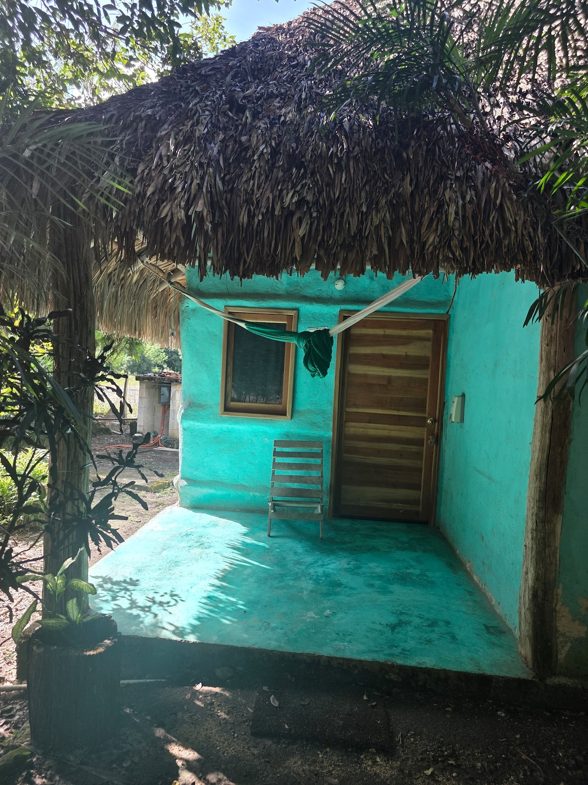 Disfruta una estancia única en esta casa de dos pisos dentro de un huerto frutal, rodeada de selva y a solo unos pasos del pueblo de Valentín Gómez Farías, Calakmul. Cuenta con recámara amplia con cama queen, A/C, TV y balcón con vista a la naturaleza. Abajo encontrarás cocina equipada, baño completo, comedor y sofá cama para una persona extra. Ideal para descansar, trabajar o explorar la selva maya.