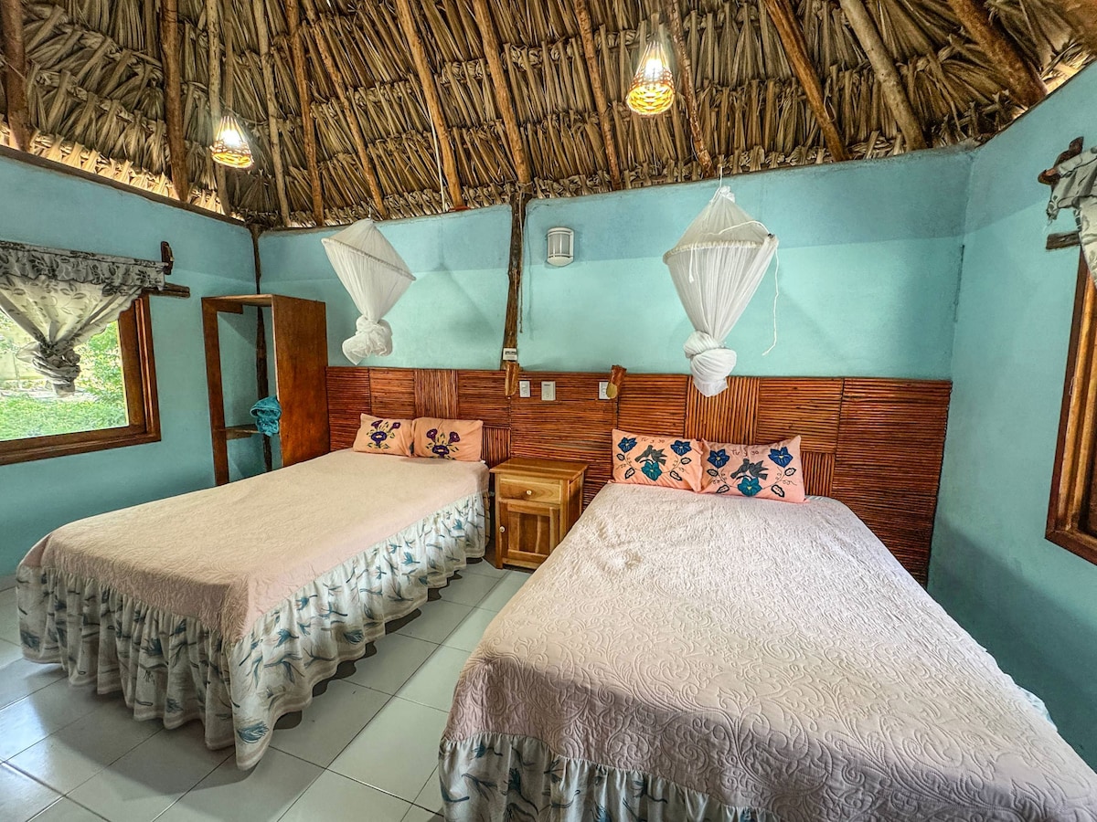 Disfruta de la paz y la serenidad de la selva rodeado de la naturaleza de los alrededores en la lujosa cabaña "Casa Tucán", equipada con todas las comodidades. Esta acogedora cabaña cuenta con una cama king size que te invita a descansar del día. La cabaña está construida con elementos elementos de la región y cuenta con tecnologías ecológicas que te garantizan un descanso saludable sin comprometer el medio ambiente.