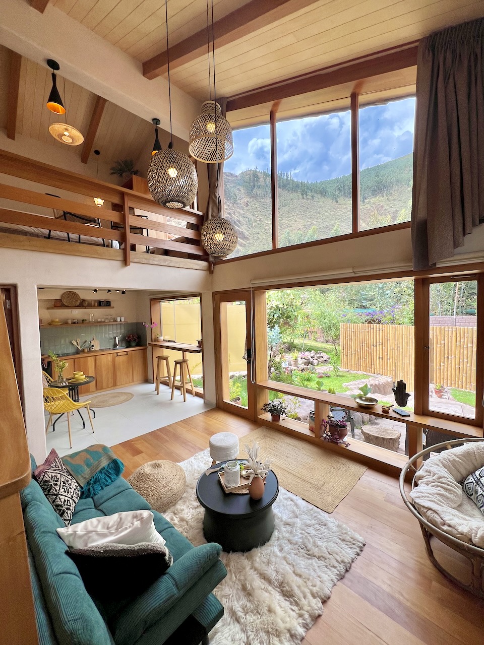 Relajate en este loft de vidrio luminoso en el corazón del Valle Sagrado. Rodeada de montañas y jardines, combina madera natural, texturas suaves y vistas serenas para una estadía tranquila. Disfrutá de un living acogedor, una cocina pequeña con barra de desayuno con vista al jardín y el sonido relajante de un arroyo cercano. Arriba, relajate en un dormitorio tipo loft con una cama tamaño king y un banco junto a la ventana. Salí a tu jardín zen privado, perfecto para el café de la mañana o para reflexionar al atardecer.