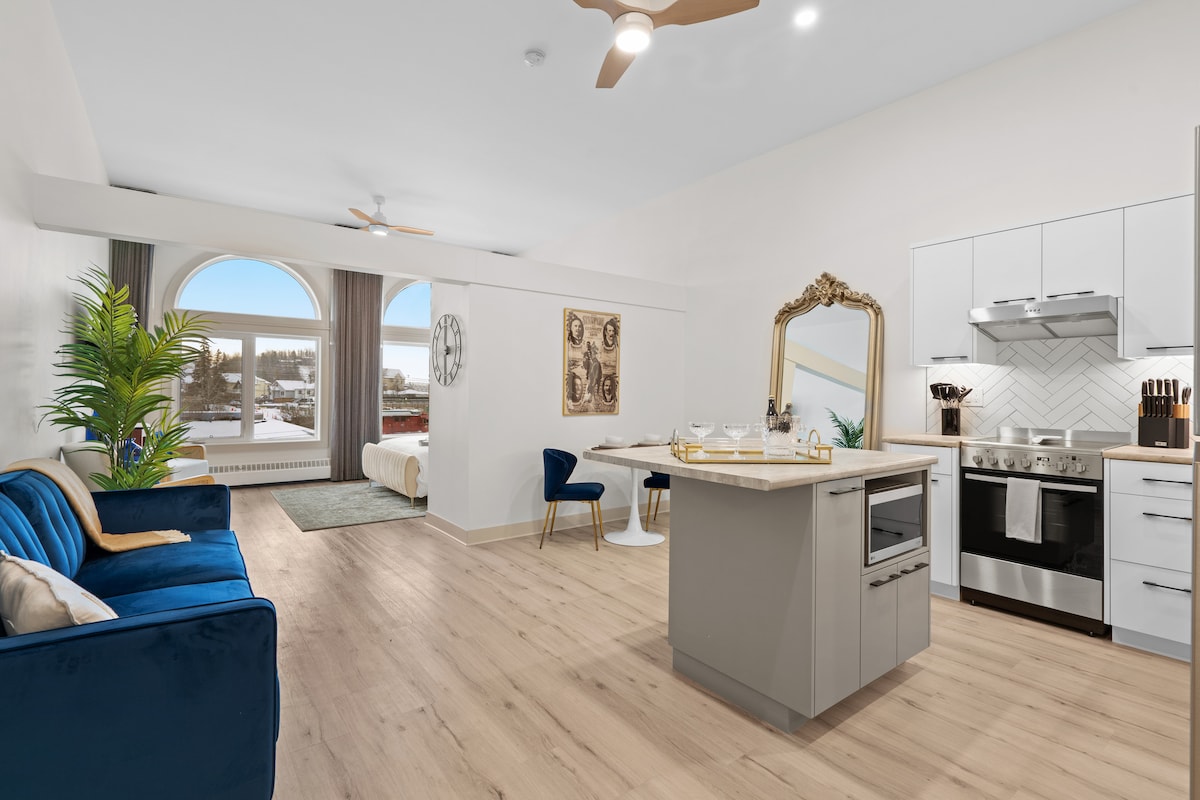 Este moderno McGill Loft ofrece una experiencia inmersiva dentro de la vibrante ciudad de Calgary. Aquí te alojarás dentro de un edificio histórico en el barrio muy solicitado de Inglewood. Perfectamente situado junto al río Elbow y el río Bow encontrarás belleza y aventura desde todas las direcciones. Si eres un conocedor de la comida, la casa de Deane (uno de los mejores restaurantes de Calgary) está justo al otro lado de la calle. Deja que la magia de esta zona icónica te capture en este impresionante y único estudio.