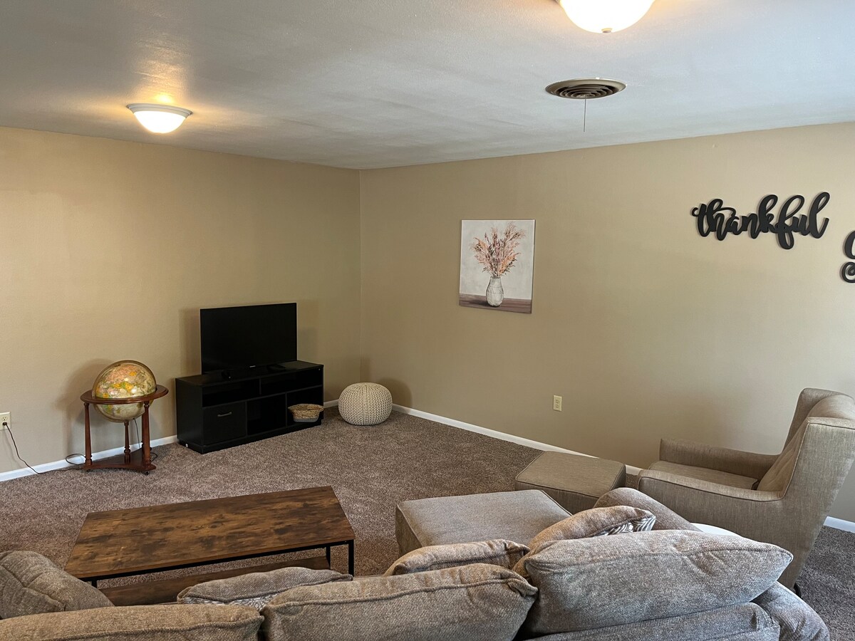 Relajate en esta casa de un piso y medio en un barrio tranquilo. Se encuentra detrás de la calle con una entrada circular y un pequeño patio enfrente. Gran patio para entretenimiento al aire libre. Genial para familias. Hay un montón de estacionamiento disponible. A solo 10 millas de Twin Lakes.