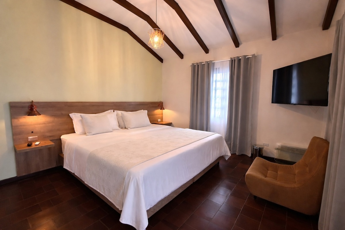Disfruta de nuestra acogedora habitación en Gardin Home Boutique, ubicado en Ciudad Jardín, una zona exclusiva rodeada de naturaleza, parques, centros comerciales, tiendas de marcas exclusivas, diversidad gastronómica y seguridad privada. Cuenta con una cama King, baño privado, armario de ropa, mini nevera, aire acondicionado y Smart TV. Tendrás acceso a piscina, turco, coworking y jardines. Ideal para parejas que buscan confort y descanso mientras disfrutan de la encantadora ciudad de Cali.