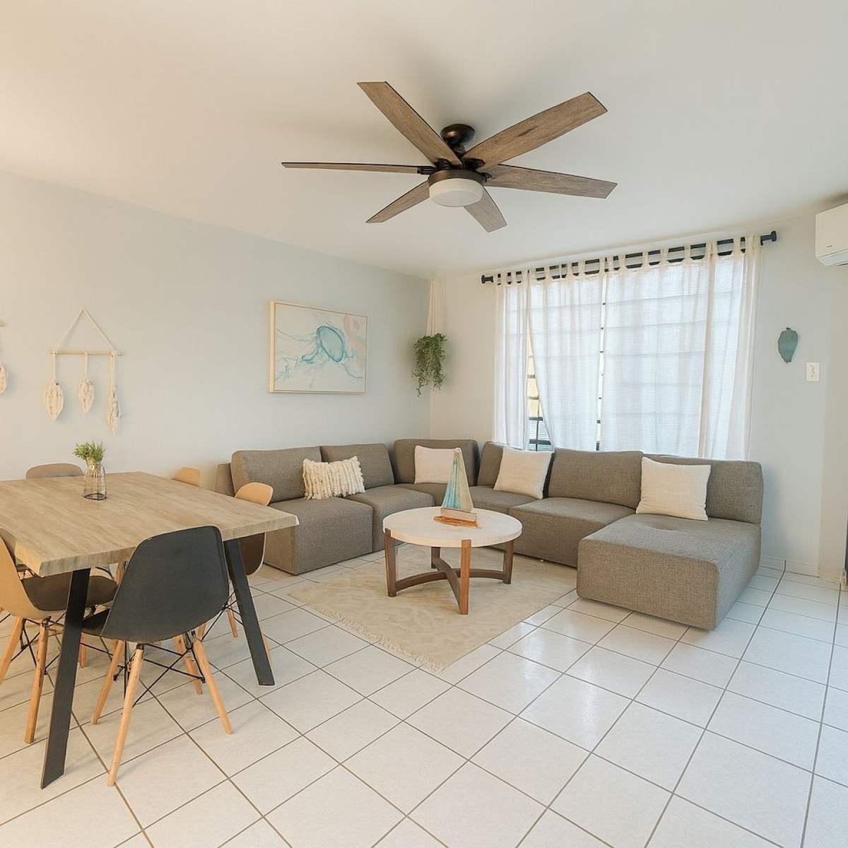 Desde este alojamiento céntrico todo el grupo podrá disfrutar del fácil acceso a todo. Pueden caminar a las mejores playas para nadar y relajarse. Acceso directo a los restaurantes con la mejor gastronomia del pueblo. La mejor vida nocturna sin la preocupacion de tener que conducir un vehiculo de motor porque te encuentras en la mejor ubicacion. Los jueves al famoso "Art walk" de Rincon, donde nuestros artistas locales exponen su arte. Lo mejor, es espacioso ,techos altos y acabado de remodelar.