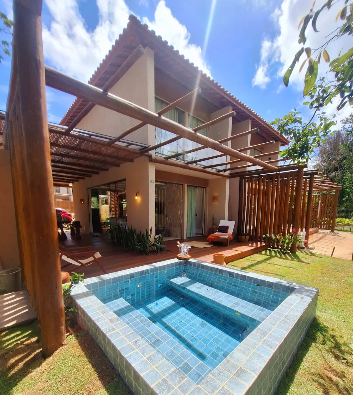 Casa en condominio cerrado, con acceso al río Jacuípe. Totalmente amueblada con muebles de primera línea, jacuzzi para 6 personas, piscina privada, 3 suites, todas climatizadas, equipadas con utensilios de cocina, cama, mesa y baño. Se encuentra a 15-20 minutos a pie de la playa de Barra do Jacuípe (donde el río se encuentra con el mar) o a 6-8 minutos en coche. La casa ofrece todo el confort y la sofisticación que su familia merece. Mercados, almacén y farmacia en la calle del condominio.