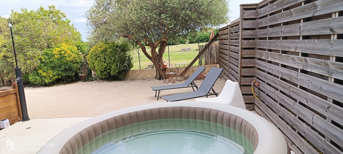 Le gite est à 1 km du village de Sérignan du Comtat. Il est situé sur notre parcelle tout en étant indépendant et sans vis à vis. Vous aurez autour de vous des champs de vignes, d'oliviers et le massif d'Uchaux. Venez profiter d'un séjour au calme, seul, en couple ou en famille. Des jeux d'enfants sont à disposition à proximité de la terrasse sur laquelle des transats et un barbecue vous attendent. 10 min de l'autoroute 10 min d'Orange 20 min des dentelles de Montmirail 45 min du Mont Ventoux