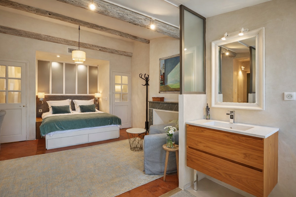 En el animado corazón del distrito de Prêcheurs, este apartamento familiar está ubicado en el tercer piso (sin ascensor) de una casa adosada histórica que una vez estuvo habitada por el pintor Lucas de Montigny y frecuentada por Mirabeau y Cézanne. Cuidadosamente renovado, ofrece unas vistas impresionantes de un jardín privado. Totalmente climatizado, combina el moderno confort de un hotel boutique con un ambiente cálido. Disfruta de nuestros servicios de hotel para una estancia ideal. Reserva ahora y descubre este remanso de paz.
