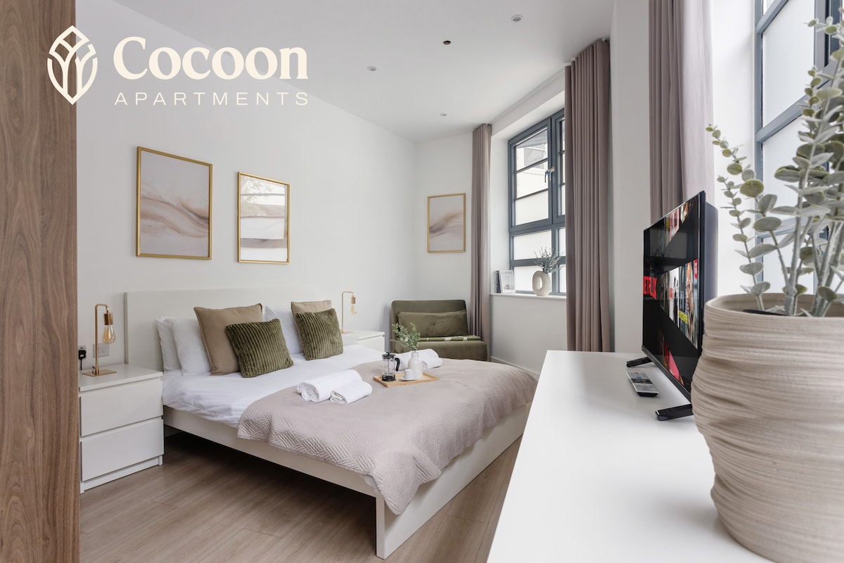 Nuestros nuevos apartamentos de una cama, operados de forma sostenible, cuentan con cocinas totalmente equipadas con el último equipo de cocina, incluida una fantástica máquina de café molido, camas tamaño king con sábanas de 400 hilos, edredones y almohadas hipoalergénicos y duchas de efecto lluvia de gran tamaño con productos complementarios de Fills. Wifi de fibra óptica superrápido en todos los apartamentos, junto con televisores inteligentes 4K de 40 pulgadas. Todos los apartamentos tienen aire acondicionado en las salas de estar y los dormitorios, y lavadora/secadora. Procura ser neutral