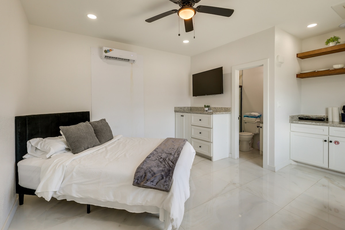 The Boho is a unique space inside a quiet, tropical complex in a residential neighborhood. The space boasts a high ceiling with large windows that allow incredible natural light to fill the space with an airy, zen vibe. Enjoy living like a BTX local in this boho hideaway located in the heart of the city. This the ideal space for business travelers looking for a comfortable, quiet space to unwind while still being just a quick Uber ride to the local art scene, dining and entertainment.