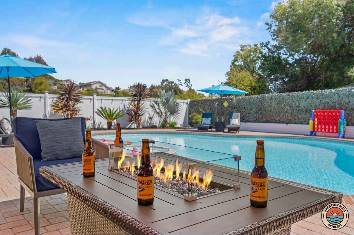 Acogedor lugar de reunión costero: ¡listo para la noche de juegos, spa y piscina!