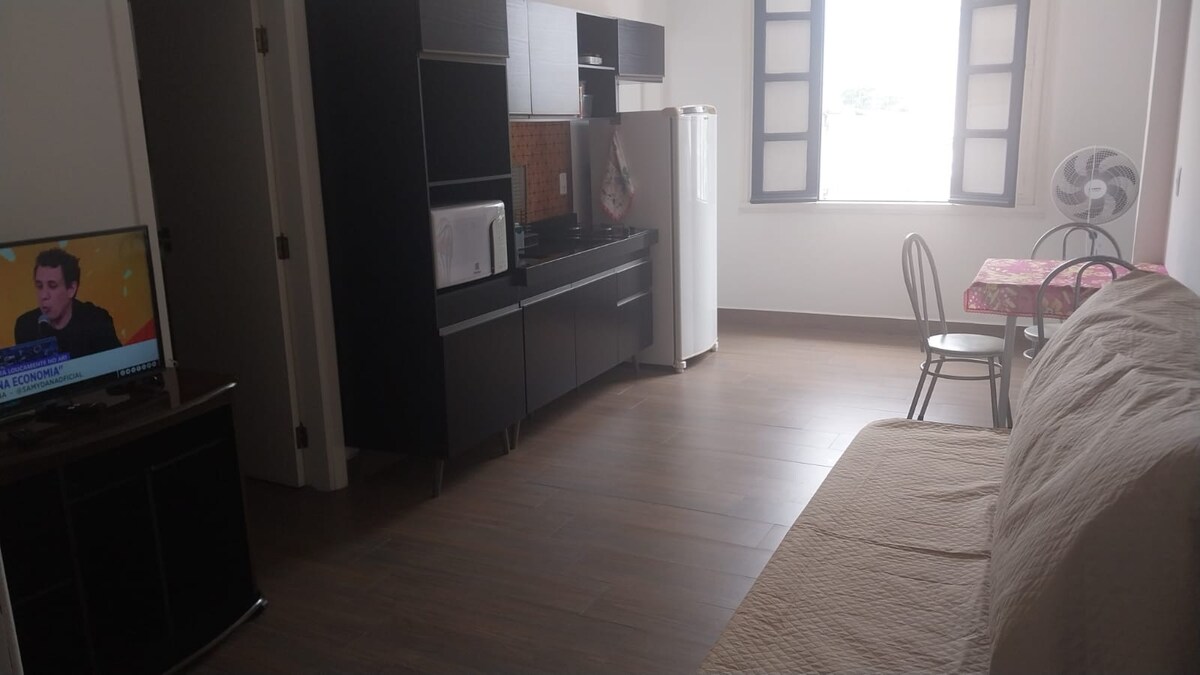 Kitnet central, garaje y patio; para hasta 4 adultos