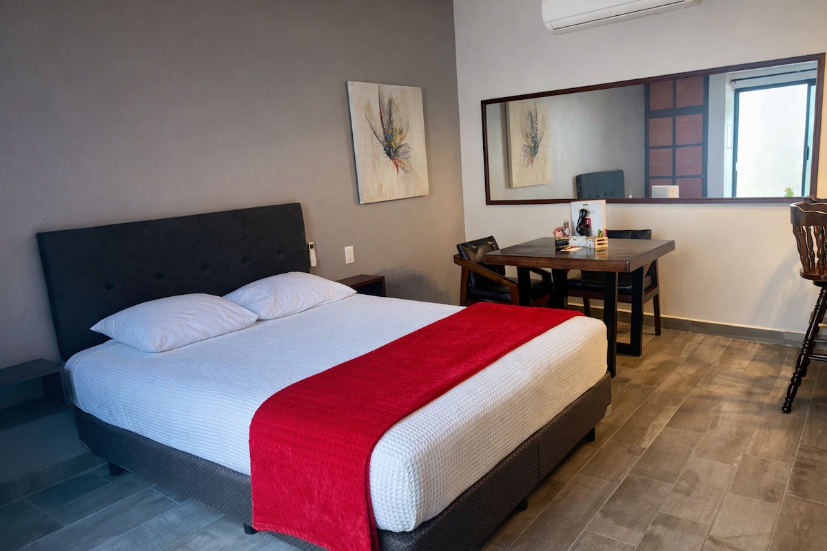 Práctico y acogedor Loft colonial modernizado en el barrio de San Román con cajón de estacionamiento privado a 50 metros del mismo. El loft es climatizado ofrece lo necesario para una estancia comoda, a unos pasos del malecón. Contamos con una cocineta y un pequeño refri para servicios básicos. Si vas a caminar hacia el centro histórico el loft se encuentra a 15 minutos caminando y en auto a 5 minutos, estamos en una esquina por donde pasan autos principalmente durante el día.