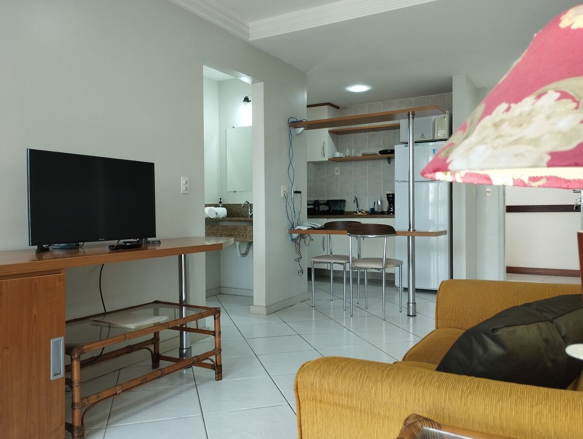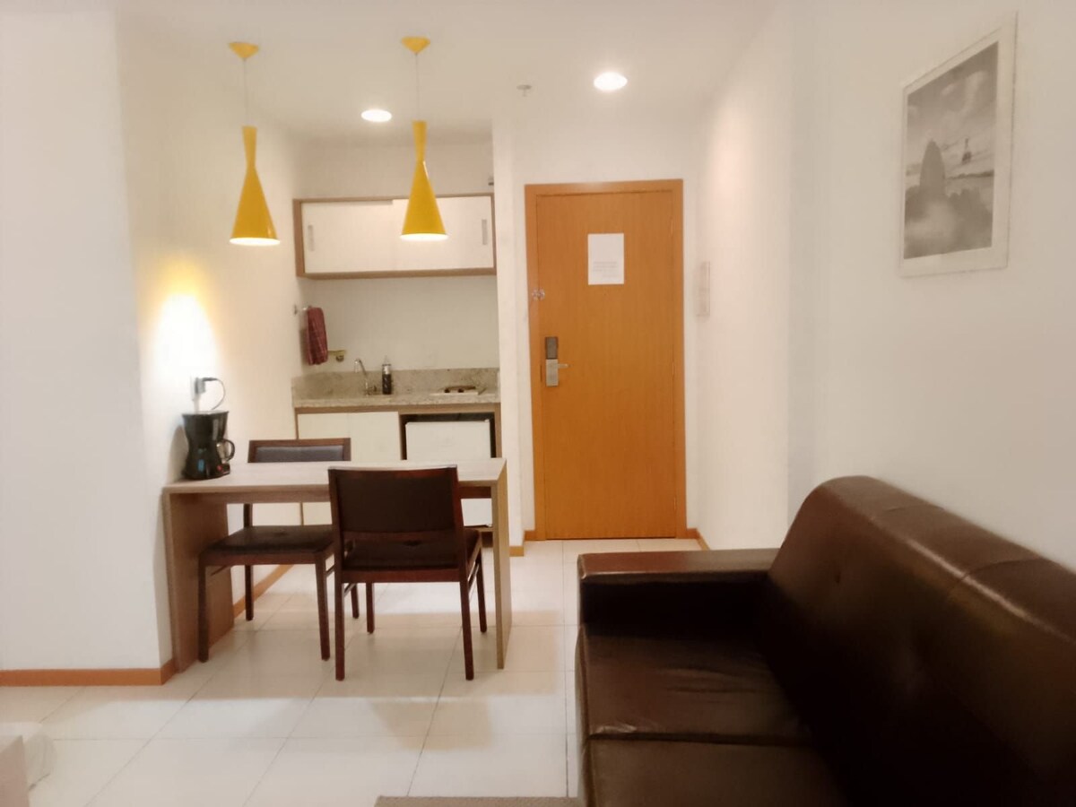 Piso con: 30 m2, cocina eléctrica, minibar, baño, TV, aire acondicionado, WiFi, caja fuerte, vajilla, cubiertos, ollas, plancha, secador y botiquín de primeros auxilios. Zona común con restaurante, jacuzzi, gimnasio, sauna seca y vapor y sala de juegos. Cerca del centro, farmacias, panaderías, restaurantes, bares, supermercados, hospitales, Universidad Estácio y Universidad Federal Fluminense. Plaza de aparcamiento para un coche.