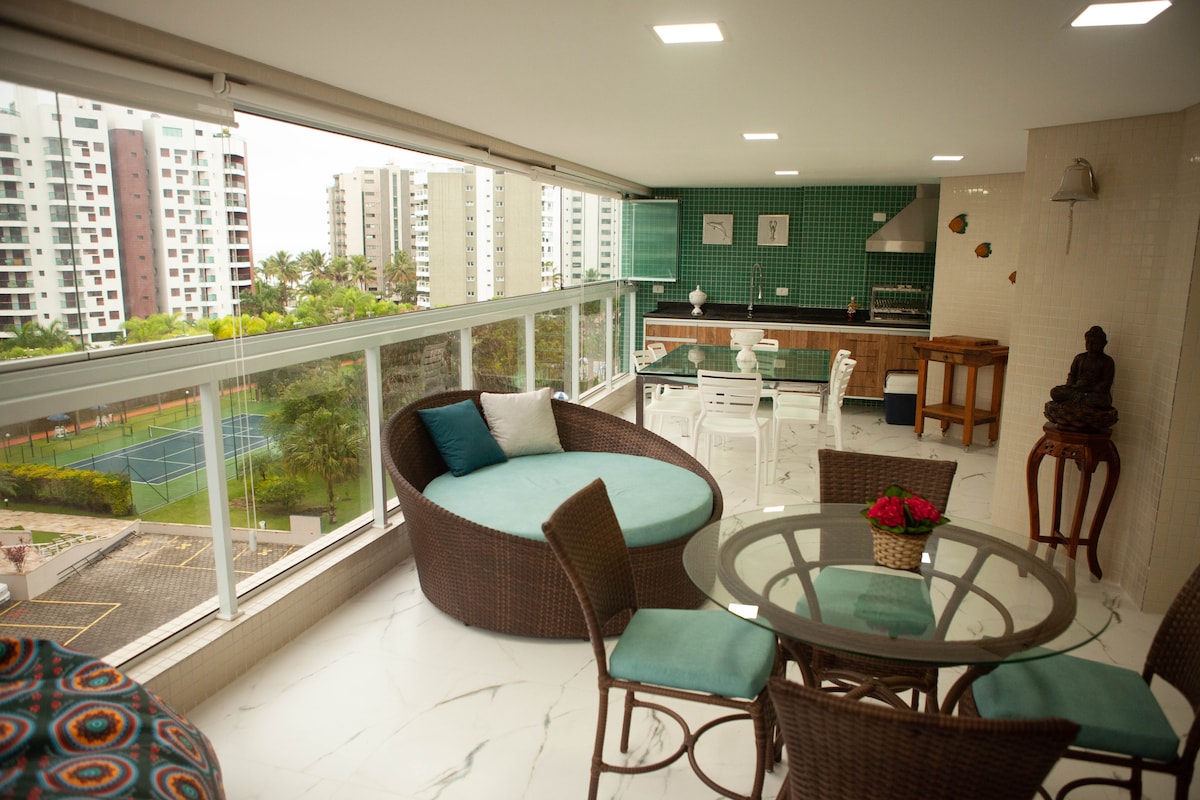 Maravilhoso apto na Riviera com ar e churrasqueira