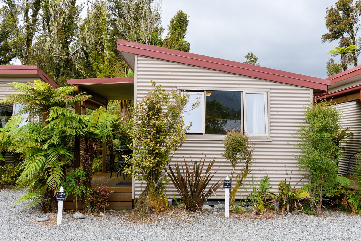 Una casa de campo tranquila y céntrica en Franz Josef. Desde tu casa podrás ver montañas nevadas y colinas cubiertas de selva tropical (si el clima lo permite). Cada una de las 10 casas de campo contiene un baño privado con ducha, una pequeña cocina con microondas, nevera, té, café y desayunos (sin estufa caliente), junto con una cama tamaño queen y una cama individual. Todas las camas están equipadas con mantas eléctricas junto con calefacción eléctrica. WIFI gratuito ilimitado y aparcamiento gratuito.