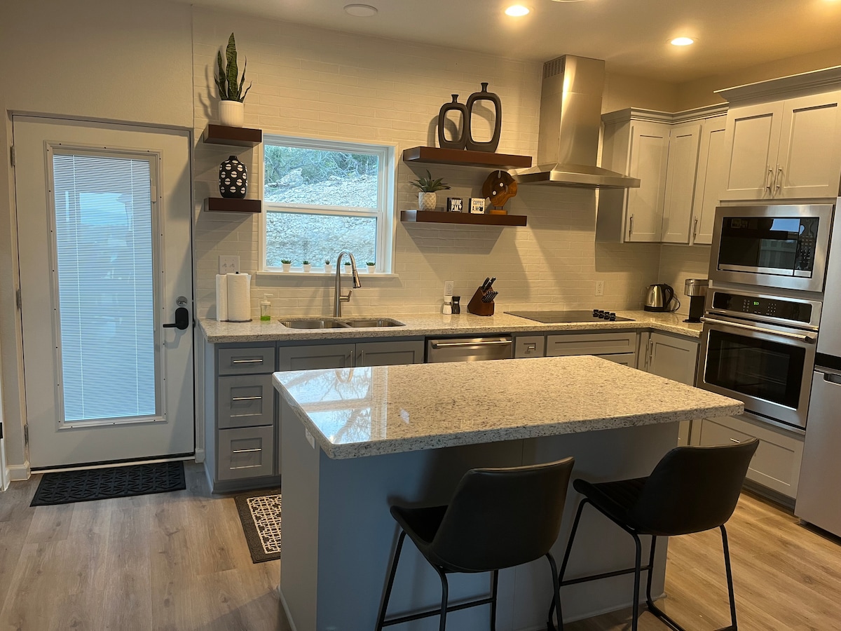 ¡UNA DE LAS PROPIEDADES MÁS ÚNICAS DEL CENTRO DE TEXAS! Ubicado en privado en un acantilado con vistas al lago Canyon, estarás rodeado de vida silvestre, vistas panorámicas y tu propia gruta privada con manantial. Disfruta del café de la mañana en el porche con mosquitero, camina hasta el lago por el sendero natural utilizado por ciervos y zorros, y contempla una espectacular puesta de sol en Texas con una vista que abarca desde la presa hasta los picos de Twin Sister. Estamos ubicados a menos de 4 millas del Horseshoe y del Whitewater Amphitheater.