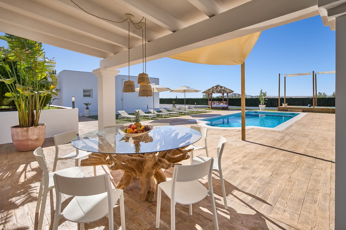 Villa Can Seosol, gestionada por Domundos. Solo tienes que disfrutar de tu estancia — nosotros nos encargamos del resto. Ideal para familias y grupos. * Ubicación céntrica: 10 min a Ibiza ciudad, 5 min a Playa d’en Bossa/ Las Salinas * 4 dormitorios (todos con aire acondicionado) * 3 baños * Casita independiente para 2 personas (con baño) * Gran parcela con terrazas, barbacoa y piscina * Amplia zona BBQ con bar estilo balinés y mesa grande * WiFi rápido