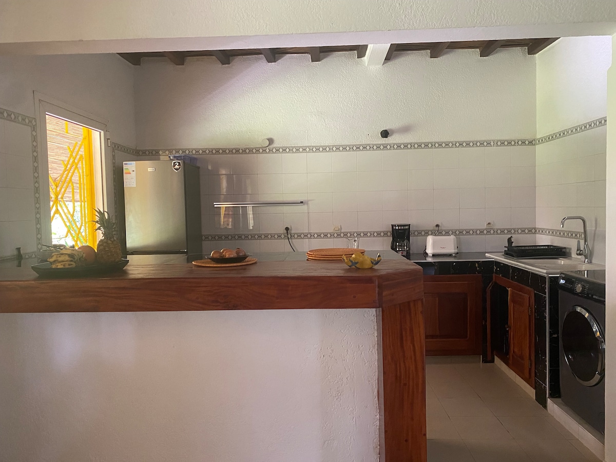 Le Hôme Casamance: Disfrute con la familia o los amigos de nuestra Villa "Kassoumaï" de 8 a 10 personas en esta villa renovada en 2023, ubicada en un condominio de 6 hectáreas en un parque verde, totalmente cerrado y vigilado con acceso a la playa. También es posible alquilar toda la casa (14 camas y 3 baños, dos cocinas, condiciones para ver en el sitio en la sección "Villa entera").