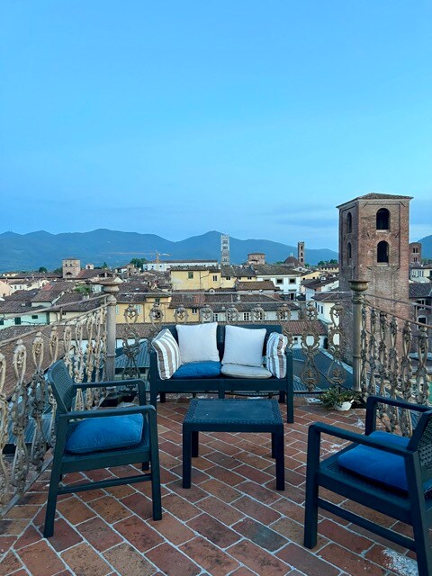 En un edificio histórico (1600), terraza con vistas espléndidas sobre los tejados rojos de Lucca. Apartamento reformado por un diseñador, situado en el 3.er piso, cuenta con todas las comodidades necesarias para hacer que su estancia sea inolvidable y cálida. Situado en el centro histórico de Lucca, cerca de todos los lugares de interés, en una zona tranquila y sin ruido; base perfecta desde donde llegar en pocos pasos a todos los lugares de Lucca. ¡Lucia es una anfitriona especial que os ayudará de manera perfecta!