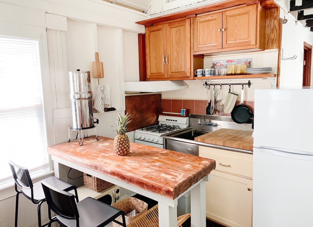 ¡Con menos de 470 pies cuadrados, esta casa de los años 20 es súper divertida y está lista para ser disfrutada para parejas, amigos y familias pequeñas! • Cama tamaño king con smart TV en el primer piso • Dos camas individuales en un acogedor loft para dormir • Cocina pequeña con estufa de propano, cafetera Nespresso y sala de estar con televisor inteligente • Patio con parrilla de carbón, estufa solitaria y mesa de comedor • Tabla de surf y flotadores Lee nuestra exención de responsabilidad totalmente honesta a continuación. *Tenemos una cámara de seguridad en el exterior delantero de la casa.