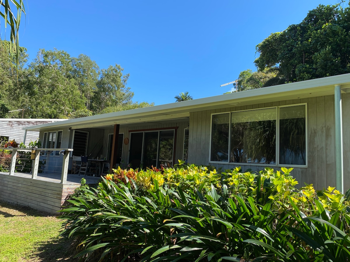 The only house in the Daintree set in the rainforest, over a permanent running stream, with your own private swimming hole and waterfalls. The open plan house and large verandas afford panoramic views. Centrally located, this Eco Certified property is the perfect setting for a romantic getaway or a fun place for families and friends to enjoy. If you are looking for peace & tranquility in the heart of the rainforest, you won't want to leave. Ideal for nature lovers, bird watchers & naturists.