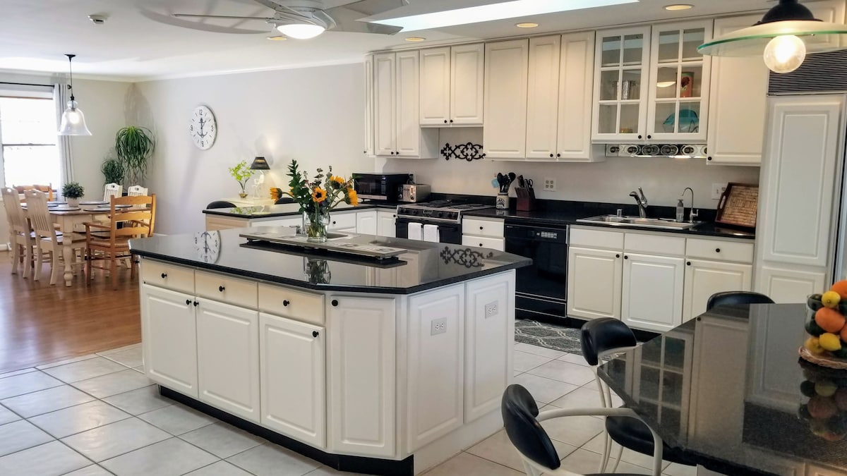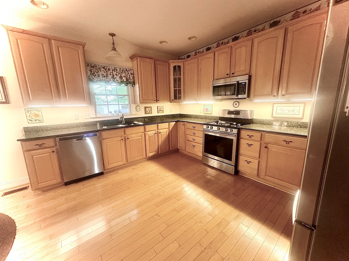 ¡Un hogar bien equipado lejos de casa! Una cocina totalmente equipada con todo lo necesario para cocinar para ti y tus huéspedes. Cerca del centro histórico de Annapolis, la Academia Naval de los Estados Unidos, el St. John's College y el MD Statehouse están a menos de 10 minutos. Hay camas tamaño king y queen en las habitaciones, y la tercera cama es un cómodo sofá cama en el living. Todas las sábanas son de algodón egipcio y las camas tienen edredones de plumón auténtico. Se pueden proporcionar cunas y ropa de cama adicionales (hasta 4) (20 USD cada una).