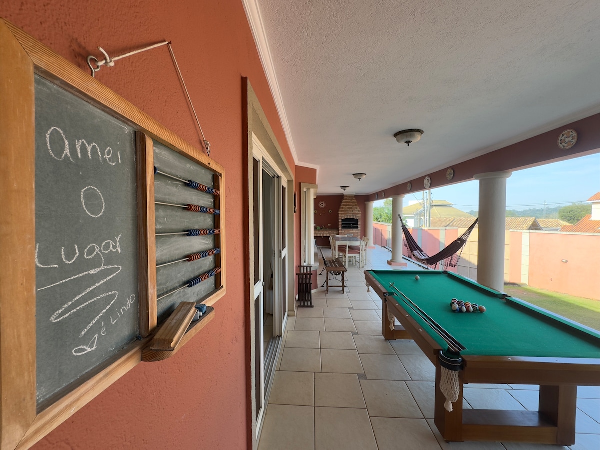 ¡La casa es una delicia! Amplia y accesible. Habitación con chimenea, cocina y zona de barbacoa integrada en un enorme balcón. ¿La vista? Solo puedes ver el verde... Los tucanos y las ardillas serán tus vecinos. ¡Seguro y divertido para niños de todas las edades y con piscina! Ideal para fines de semana/días festivos, celebraciones familiares, para trabajar o pasar temporadas más grandes, incluso para recuperar la salud. Estamos dentro de un bolsillo residencial tranquilo y al mismo tiempo cerca de restaurantes, centros comerciales, mercados.