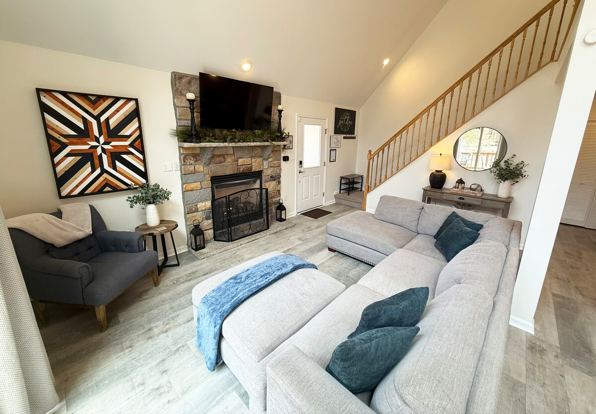 Relajate y recargá energías en esta casa triangular recién renovada ubicada en una comunidad tranquila. Perfecta para parejas, esta cabaña acogedora tiene todo lo que necesitás para una escapada de fin de semana. ¡Sumergite en el jacuzzi en la espaciosa terraza o explorá las pistas de esquí y los senderos cercanos a solo un corto trayecto en auto! * Aceptamos mascotas y cobramos una tarifa por mascotas de $ 75 que va directamente al personal de limpieza.*