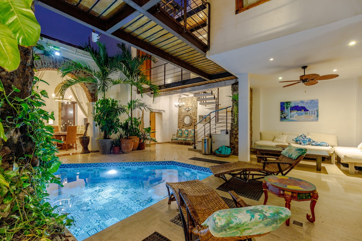 Vive Cartagena desde una joya patrimonial de 1750, reconocida por Diners y La República como una de las mejores casas de lujo del país. Casa colonial restaurada en el corazón de Centro histórico, con piscina privada, 6 suites, solárium, terrazas, BBQ y lancha propia. Ideal para familias y grupos. ✔ Mayordomo y housekeeping diario ✔ Traslado al aeropuerto incluido ✔ Piscina privada y mirador panorámico ✔ Cocina de lujo. ✔ AC en todos los espacios A pasos de los mejores bares y restaurantes.