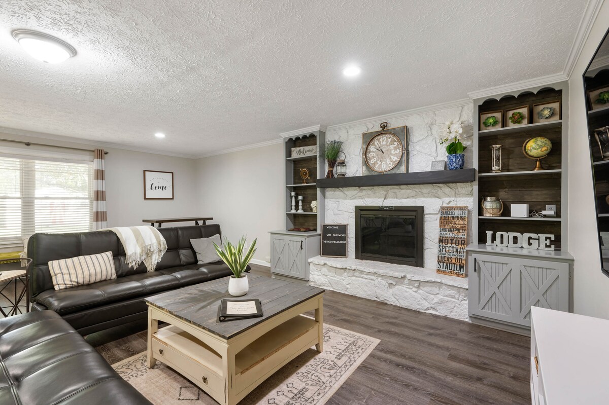 ¡Con 2 CALENTADORES DE AGUA SIN TANQUE siempre tendrás agua caliente! Este rancho personalizado de Airbnb recientemente renovado tiene 5 dormitorios, 4 baños completos, 16 camas con colchones de espuma viscoelástica, en 1/2 acre. Isla grande y espacios para comer al aire libre. Fogata con bancos incorporados, a 3 millas de Grand Park, a menos de 10 millas de la 465, lo que la convierte en una ubicación perfecta para las personas que visitan Carmel, Noblesville, Fishers, Indy, Kokomo, Speedway y Greenwood. No se permiten fiestas ni eventos según las pautas de Airbnb. Ten en cuenta que el check-in es a las 4:00 p. m. y el check-out es a las 11:00 a. m.