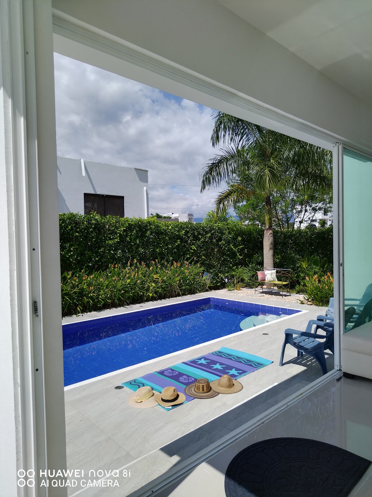 Relájate en un sitio tranquilo y elegante, en condominio. Vigilancia 7/24. Aire puro, paisajes. Clima cálido. Cocina Integral. Piscina privada, Wifi, tv. Amplio BBQ. Parrilla. Juegos de mesa, Bolirrana. 2 Parqueos internos, 2 Externos. APROPIADO para GRUPOS que respeten normas de convivencia. NO APROPIADO para GRUPOS que exigen servicio de piscina toda la noche en medio de desorden y griteria. HORARIO DE PISCINA: hasta 12 pm. Vía Nueva pavimentada hasta el sitio. Bienvenidos!!!