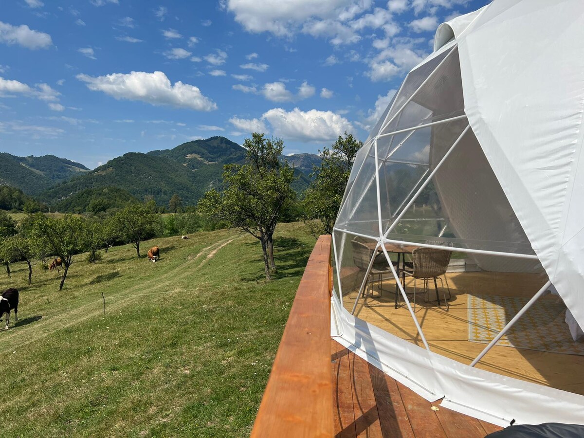 Acest dome geodezic a fost gândit pentru noi, ca refugiu personal, dar dorința altora de a-l experimenta ne-a inspirat să îl închiriem. Vei găsi aici un spațiu confortabil, plin de lumină și cu o energie bună. Dotat cu cadă freestanding, ciubăr ofuro privat inclus, terasă exterioară si vatră pentru foc. Locatia este gandită pentru o escapadă linistită, unde te poti bucura de o experientă autentică si deconectare totală. Clasificată oficial cu 3 stele de Ministerul Turismului. ✅ ⭐️⭐️⭐️