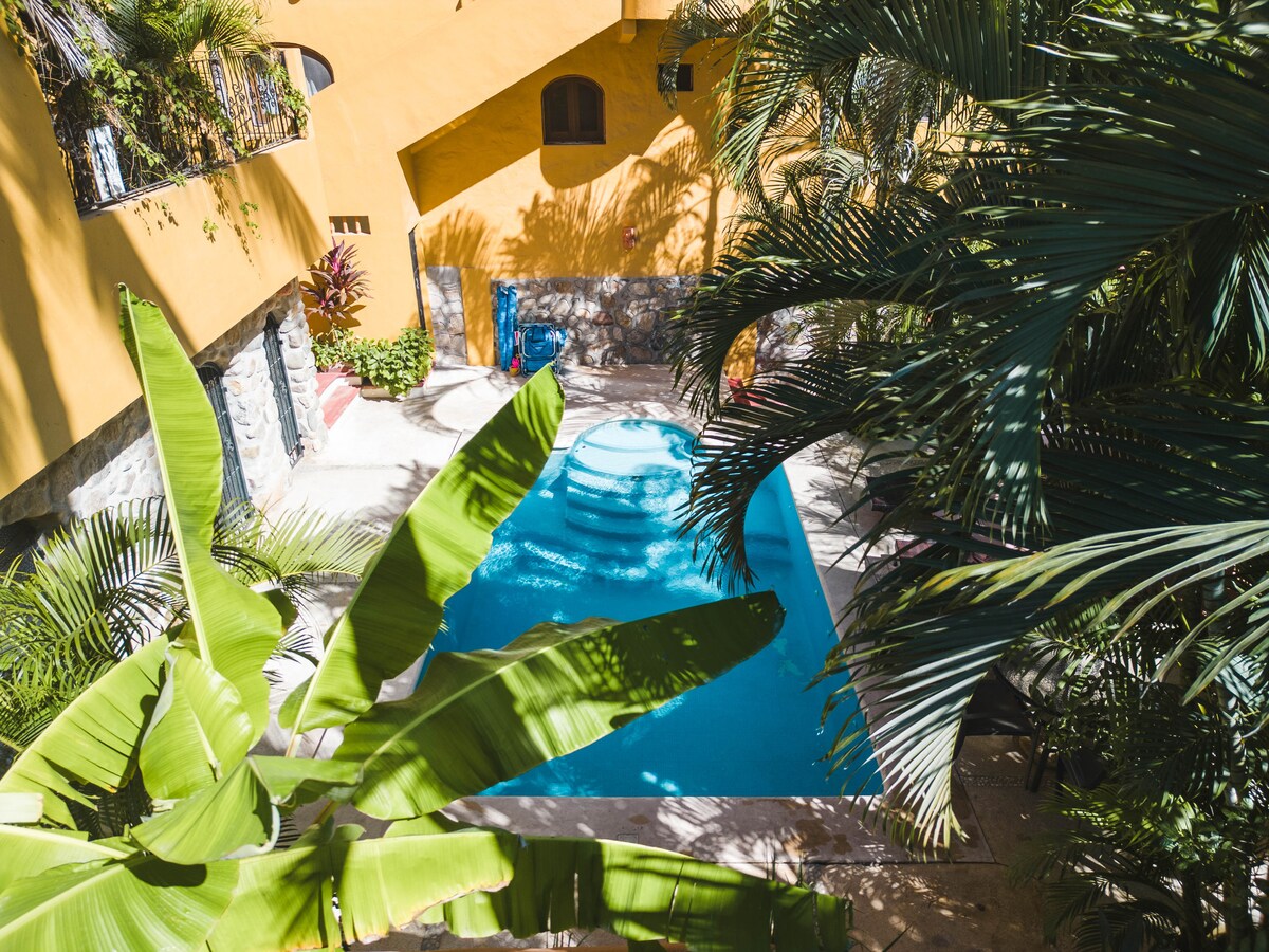 ¡Bienvenido a nuestro encantador ático en el corazón de Sayulita! Disfruta de la arquitectura mexicana y de la vida al aire libre con impresionantes vistas de Sayulita desde tu santuario elevado. Ubicación ideal, a solo dos manzanas de la playa principal para surfear y nadar, y a dos manzanas de la plaza central. ¡La cama tamaño queen y el aire acondicionado lo hacen perfecto para personas que viajan solas o parejas que buscan una escapada encantadora!
