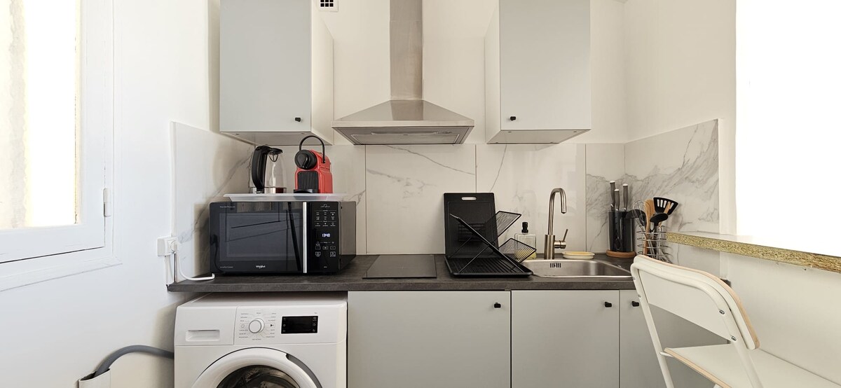 Joli logement avec terrasse privative à seulement quelques mètres du port de Carry le rouet , des plages des commerces. Parking gratuit. Doté d’une chambre ainsi que d’une cuisine équipée. avec micro-ondes, réfrigérateur, cafetière ainsi que grille-pain bouilloire . Barbecue électrique extérieur . Salle de douche avec WC. Serviette et linge fourni uniquement pour le lit. Les draps pour le canapé lit sont en supplément. Climatisation réversible La gare se trouve à quelques mètres du Logement