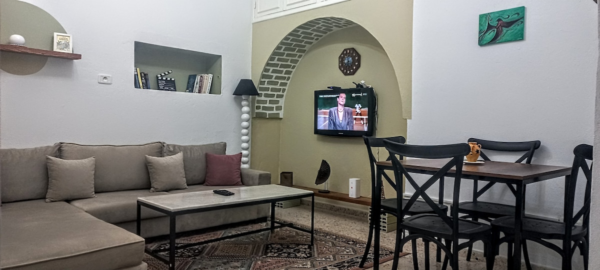 À Sidi Bou Saïd, dans un havre de silence et de lumière, ce grand lumineux S1 mêle tradition arabo-andalouse et confort moderne. Cheminée, terrasse fleurie, arches, zelliges et mobilier artisanal créent une ambiance unique. Cuisine équipée, Wi‑Fi haut débit,TV avec toutes les chaînes ,films et séries, literie soignée. En 15 min à pied : ruelles bleues, cafés, mer et saveurs locales. Idéal pour créer, se ressourcer, s’évader ou simplement respirer.
